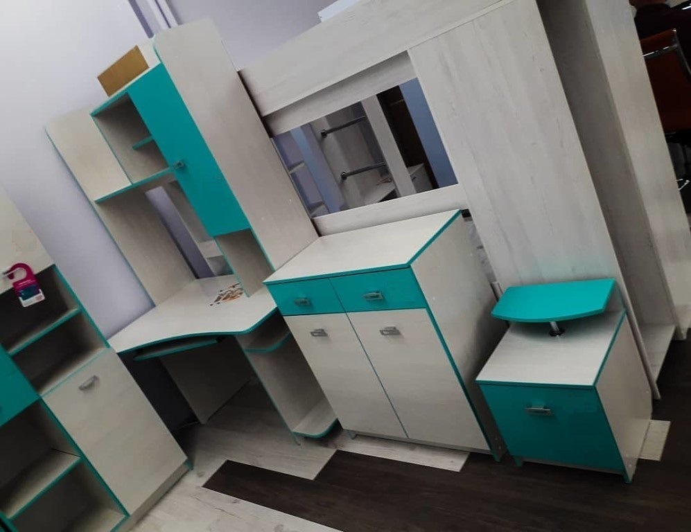 комод, кровать односпальная, стеллаж, стол письменный, тумба прикроватная, шкаф угловой, шкаф узкий с полками, шкаф узкий с ящиками, шкаф широкий с полками и ящиками, шкаф широкий с ящиками
