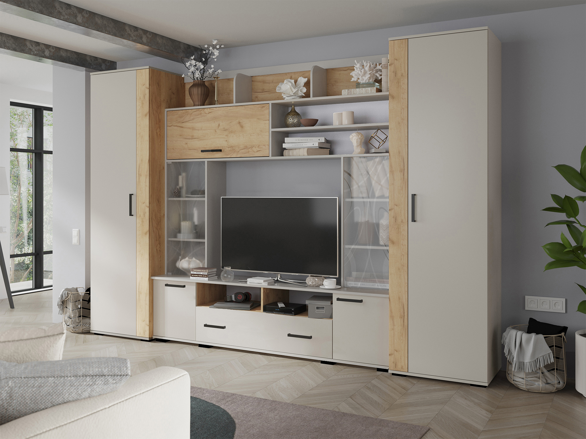 Гостиная модульная ОСКАР-18-9 кашемир / дуб крафт золотой