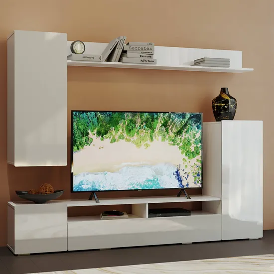 Сдержанный дизайн позволит воплотить любую задумку в интерьере. Благодаря отсутствию лицевой фурнитуры гостиная смотрится более выразительно.