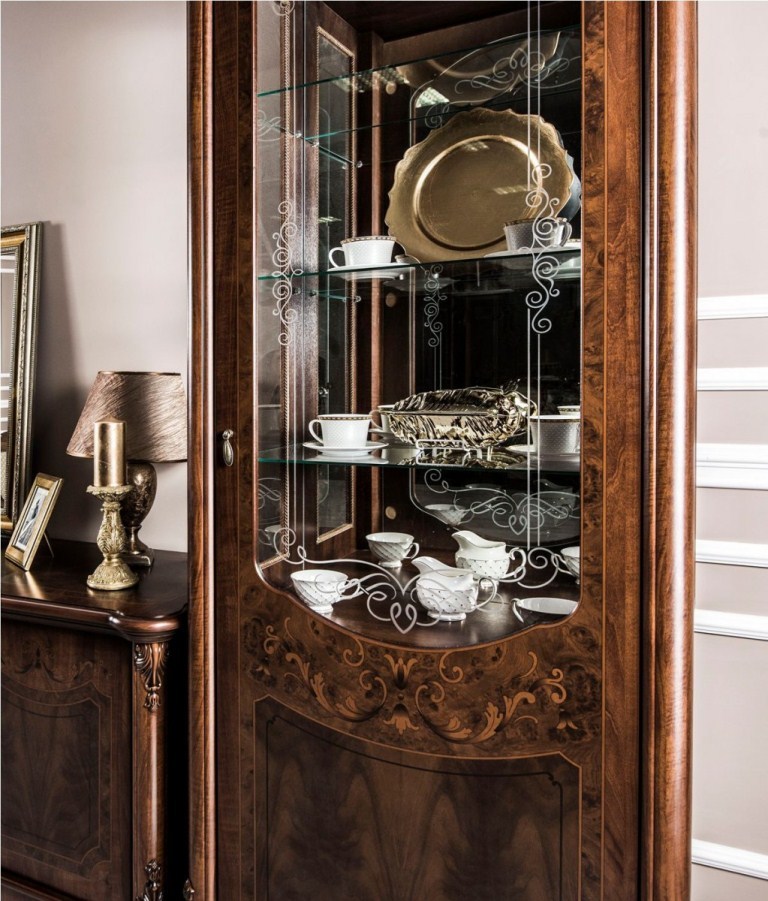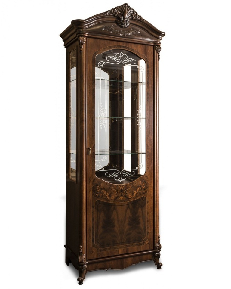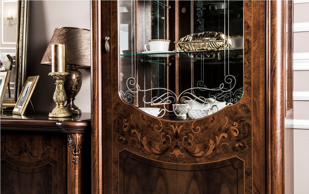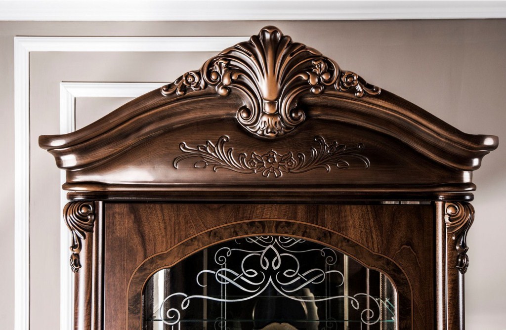 - Насыщенный древесный тон мебели и приятную округлость линий дополняют богатство и причудливая грация узоров на пилястрах.