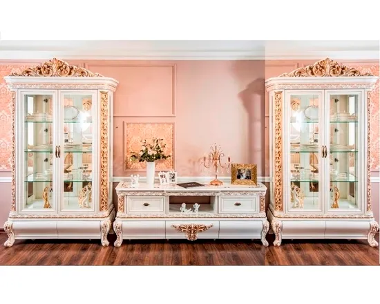 - Очаровательная гостиная, состоящая из двух 2-х створчатых витрин и тумбы под ТВ - флорентийская роскошь в интерьере Вашей гостиной!
