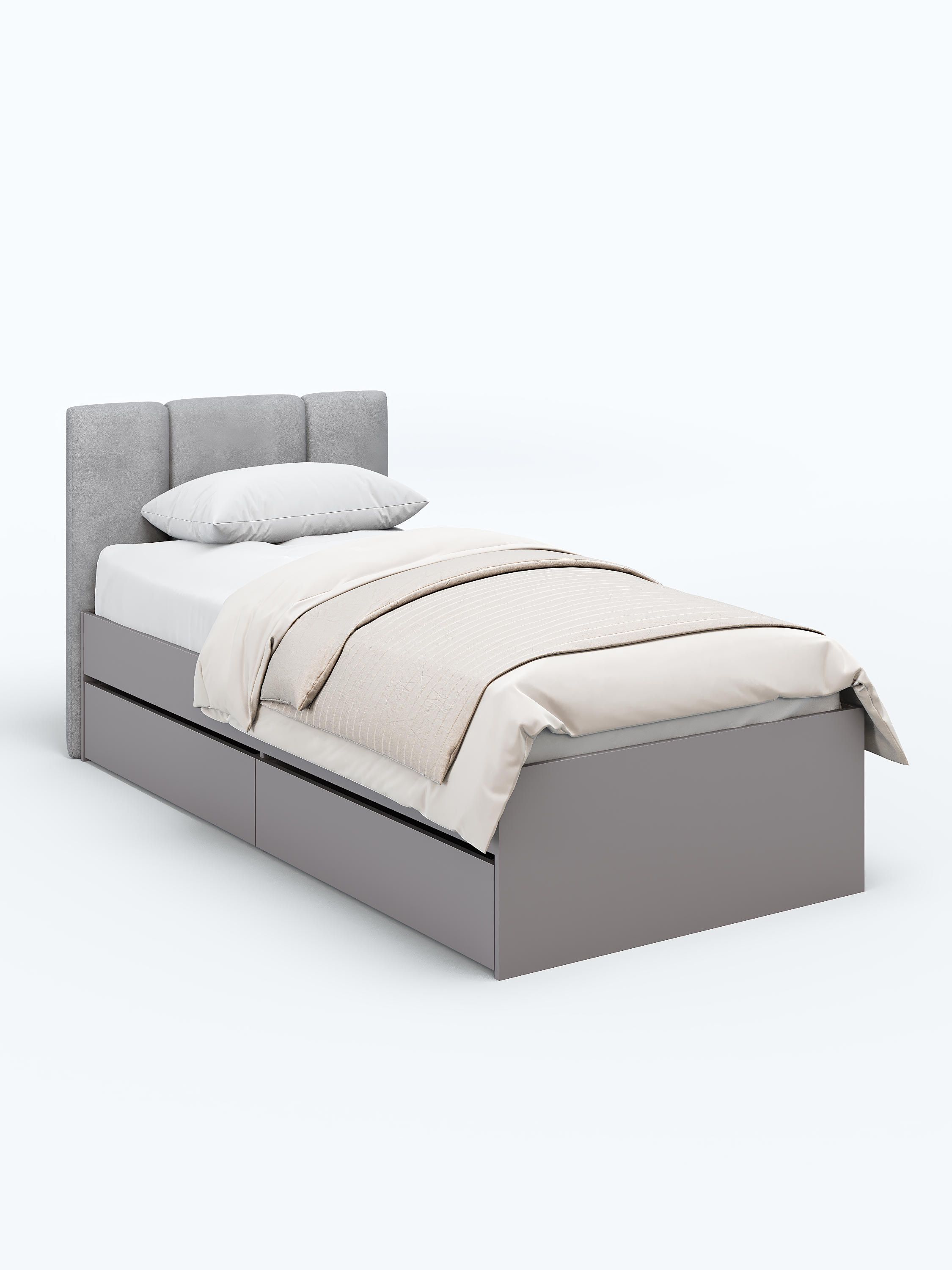Кровать АЛЕССА с мягким изголовьем 1900-900 /1932*920*936/ вулканический серый / вулканический серый / замша Federica Ash