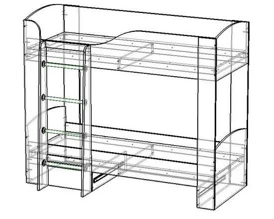 Классическая модель двухъярусной кровати — представляет собой два спальных места, расположенных друг над другом и соединенных между собой вертикальной лестницей.