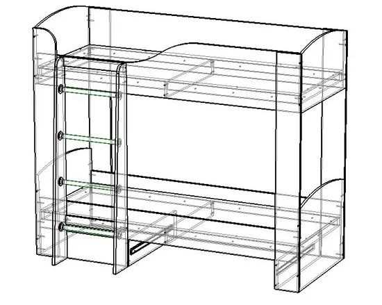 Классическая модель двухъярусной кровати — представляет собой два спальных места, расположенных друг над другом и соединенных между собой вертикальной лестницей.