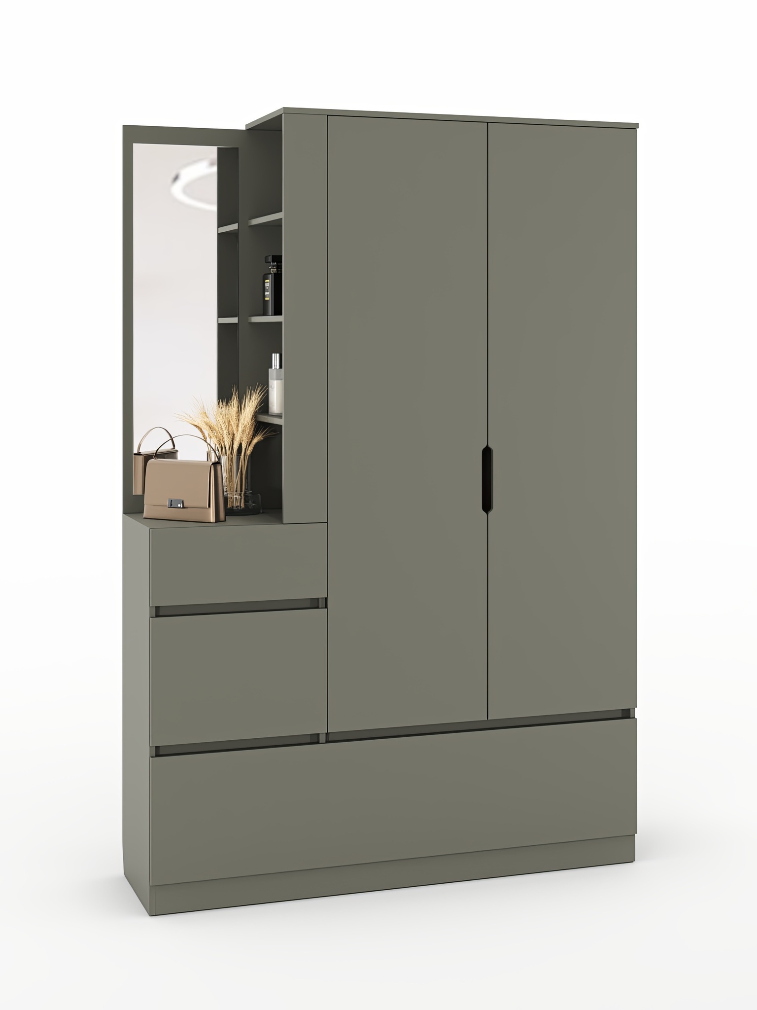 L-образные навесы 2 шт в комплекте, газлифты плавного хода на откидной дверце (2 шт), крючок двухрожковый имеет цвет хром ИЛИ хром матовый в зависимости от партии, направляющие ящика бесшумного закрывания, направляющие ящика полновыкатного типа, торцевые стороны деталей фасадов обработаны кромкой ПВХ толщиной 2 мм!