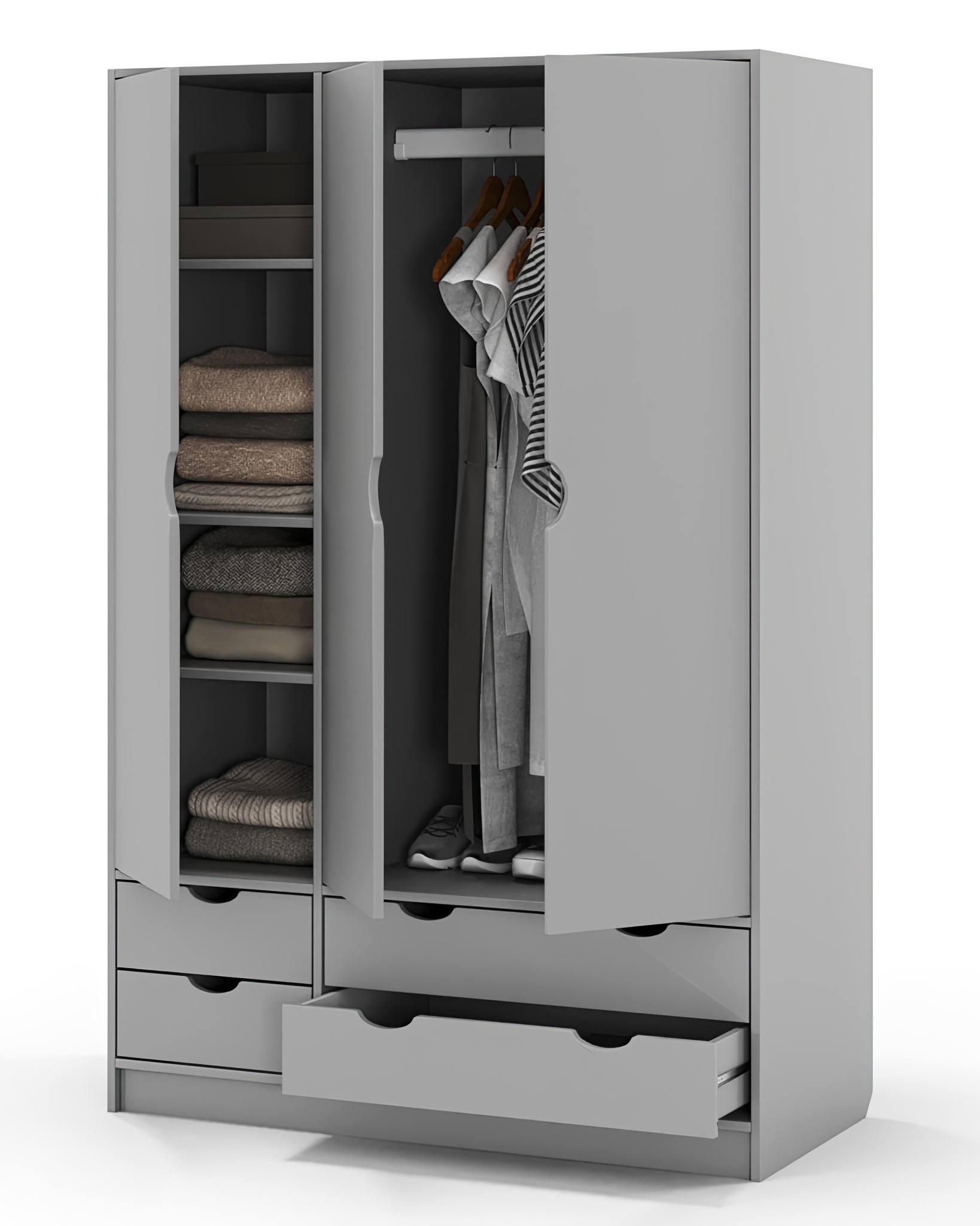 кромка ПВХ 0,4 мм, лицевая фурнитура отсутствует, дверцы и ящики открываются за край фасадов, направляющие ящика бесшумного закрывания, направляющие ящика полновыкатного типа, петли вкладные, пластиковые подпятники