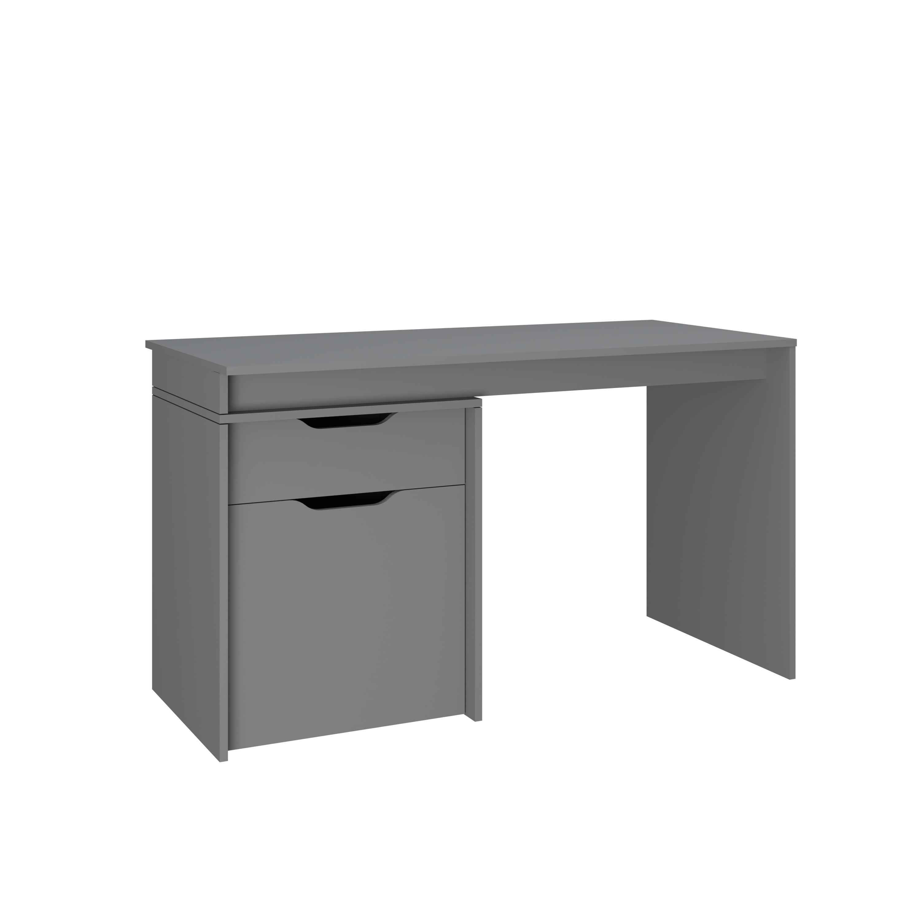 лицевая фурнитура отсутствует, ящики открываются за край фасада, направляющие ящика бесшумного закрывания, направляющие ящика полновыкатного типа, пластиковые подпятники, торцевые стороны столешницы обработаны кромкой ПВХ 2 мм, остальные детали - кромка ПВХ 0,4 мм