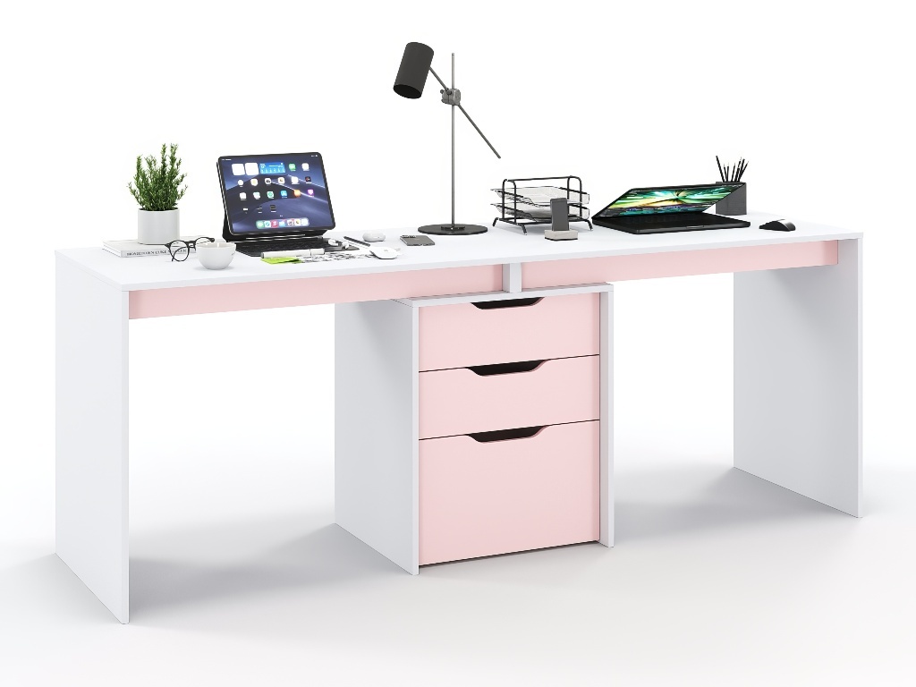 Стол ГРАНД-ЛАВОРО /1800*750*800/ белый / розовый кварц