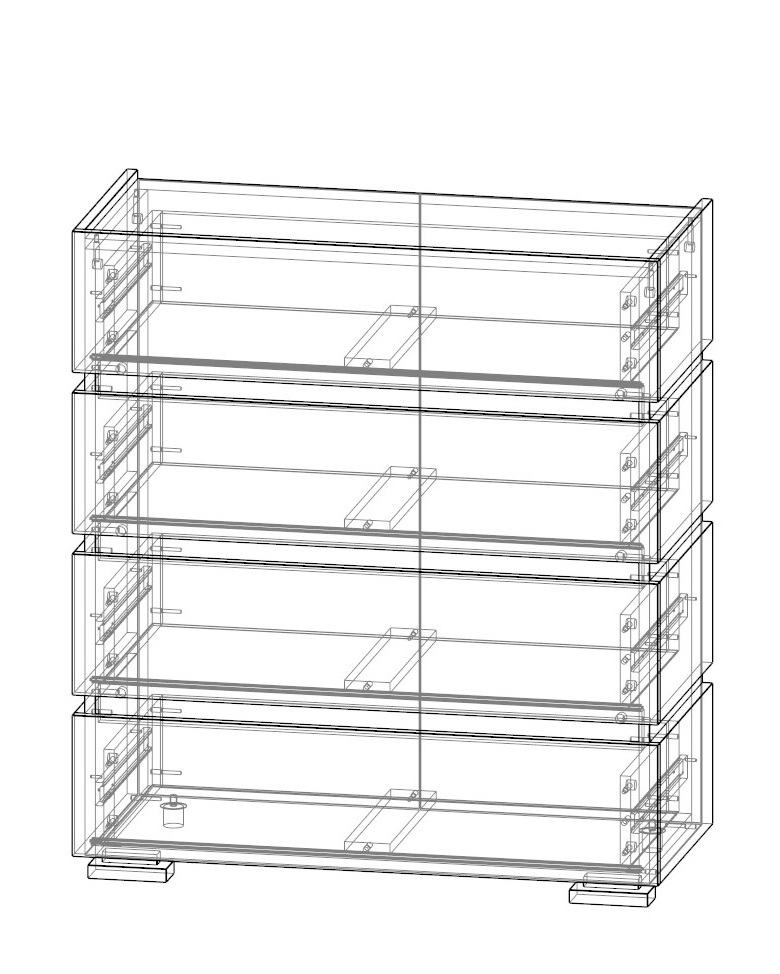 кромка ПВХ 0,4 мм, лицевая фурнитура отсутствует, ящики открываются за край фасада, направляющие ящика бесшумного закрывания, направляющие ящика полновыкатного типа