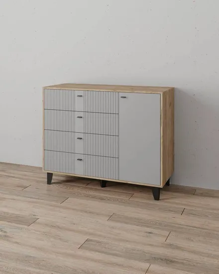 Комод КАТРИН-13 дуб крафт серый / МДФ серый