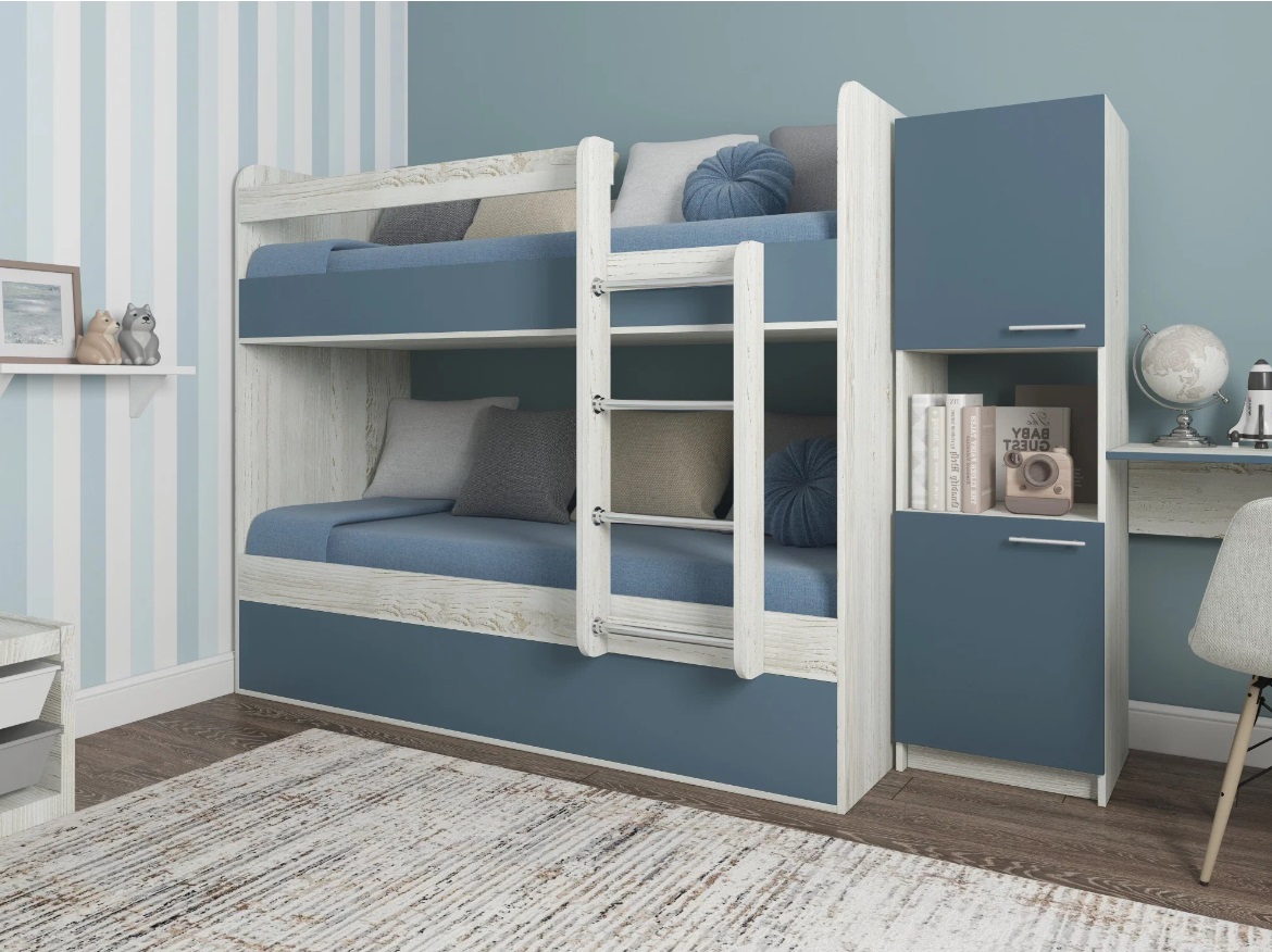 закругленные углы боковых стоек для безопасности детей, увеличенное рассточние между ярусами позволяет разместиться взрослому сидя