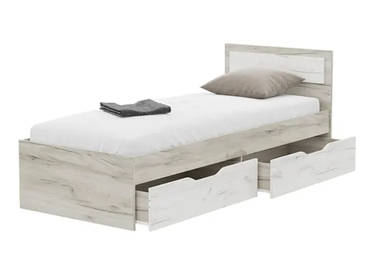 ГАРМОНИЯ КР 607 кровать с ящиками 0.8х2,0 (Крафт)фасад ДУБ КРАФТ БЕЛЫЙ/корпус ДУБ КРАФТ СЕРЫЙ