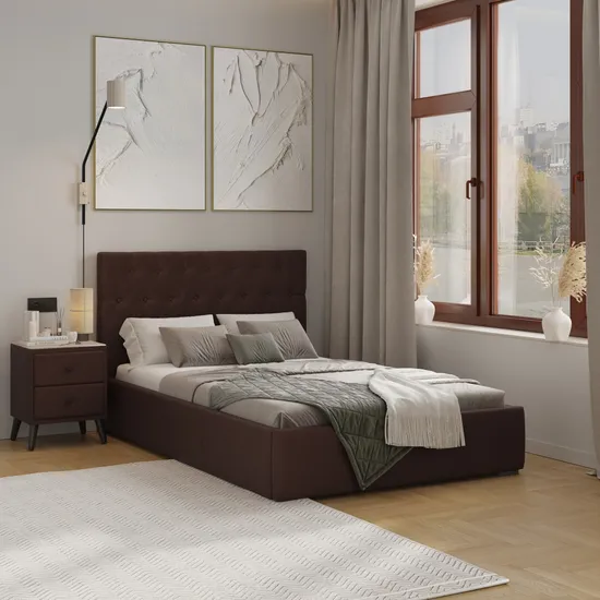 вариант "основание ортопедическое с подъемным механизмом" имеет ящик для хранения белья, Обивочный материал — двухслойный плотный велюр — имеет высокие эксплуатационные свойства. Эта ткань износоустойчива, без «эффекта письма», с водоотталкивающим покрытием, обладает мягкостью и эластичностью., обратная сторона изголовья- техническая ткань черная, по Вашему желанию кровать можно дополнить интерьерной прикроватной тумбой с обивкой в тон