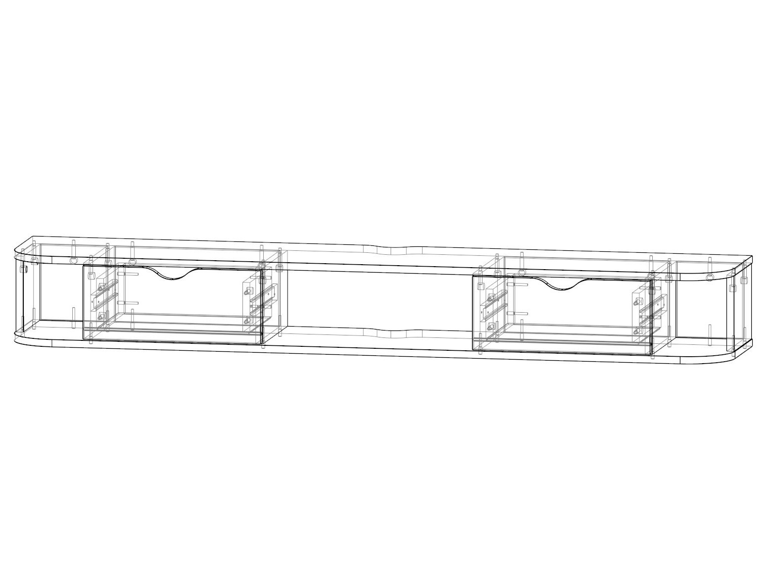 возможно использование в качестве тумбы ТВ при навесном раположении экрана, центральное открытое отделение без задней стенки, в остальных отделениях - задняя стенка ЛДСП, ширина фасадов ящиков 396 мм