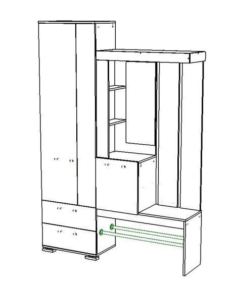 вешалка выдвижная, для ширины прихожей 1500 мм : ширина шкафа 600 мм, крючок двухрожковый 2 шт, размеры зеркала 760*300 мм