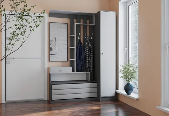 Прихожая модульная ЯМАЙКА-4 графит серый / камень серый