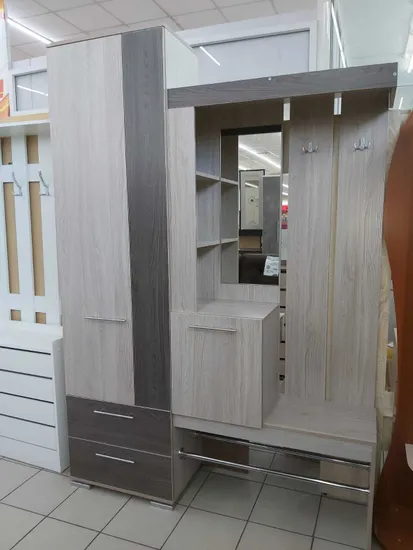 вешалка выдвижная, для ширины прихожей 1500 мм : ширина шкафа 600 мм, крючок двухрожковый 2 шт, размеры зеркала 760*300 мм