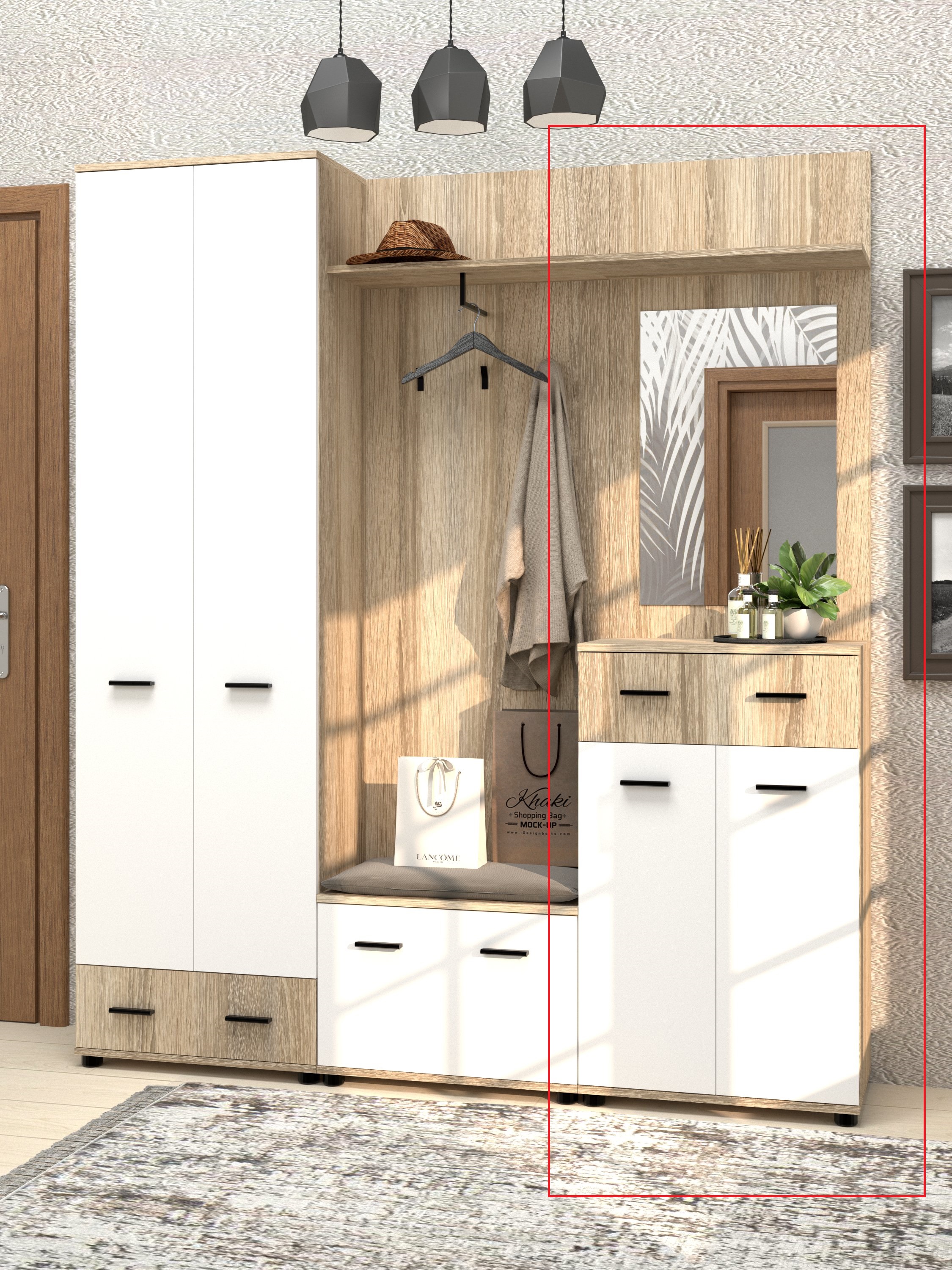 высота фасада ящика 191 мм, глубина полки над зеркалом 264 мм, единая панель для тумбы и зеркала