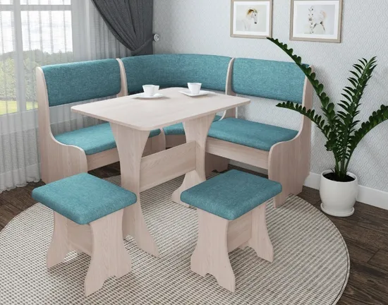 Доп.информация Под сидением скамеек есть ящики для хранения кухонных принадлежностей.Благодаря универсальному углу, возможна сборка на любую сторону.Находится в разобранном состоянии в запечатанной заводской упаковке.