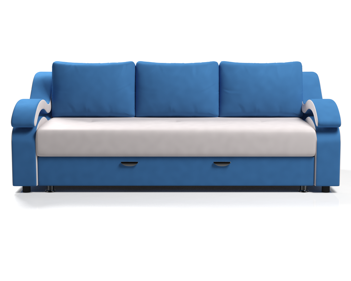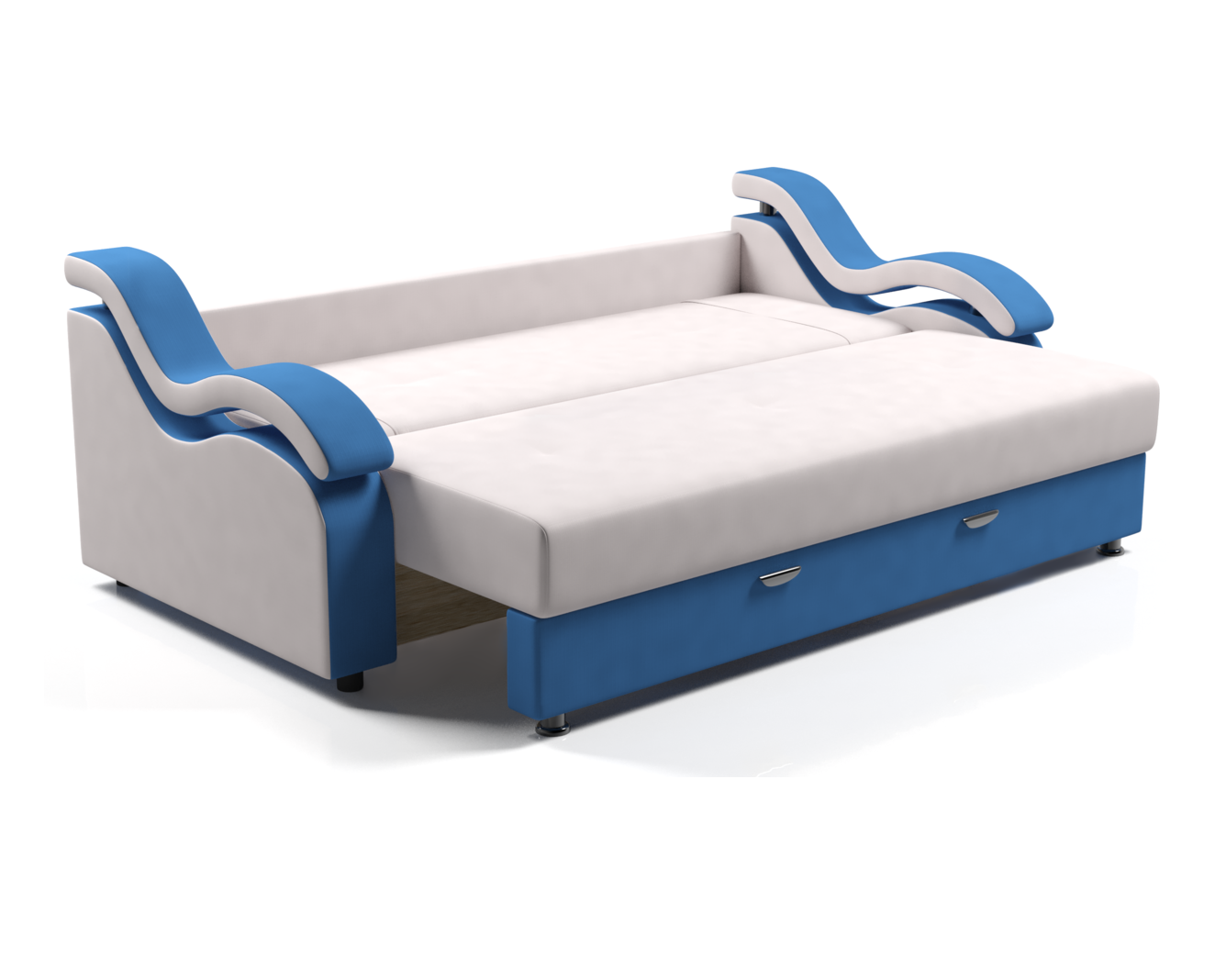 Достоинства модели: небольшие габариты, что немаловажно при небольших комнатах. Причем даже в разложенном состоянии еврокнижка диван займет практически ту же площадь, что и в сложенном виде. Несомненным плюсом является наличие ламинированного ящика для хранения белья. То есть, не придется ломать