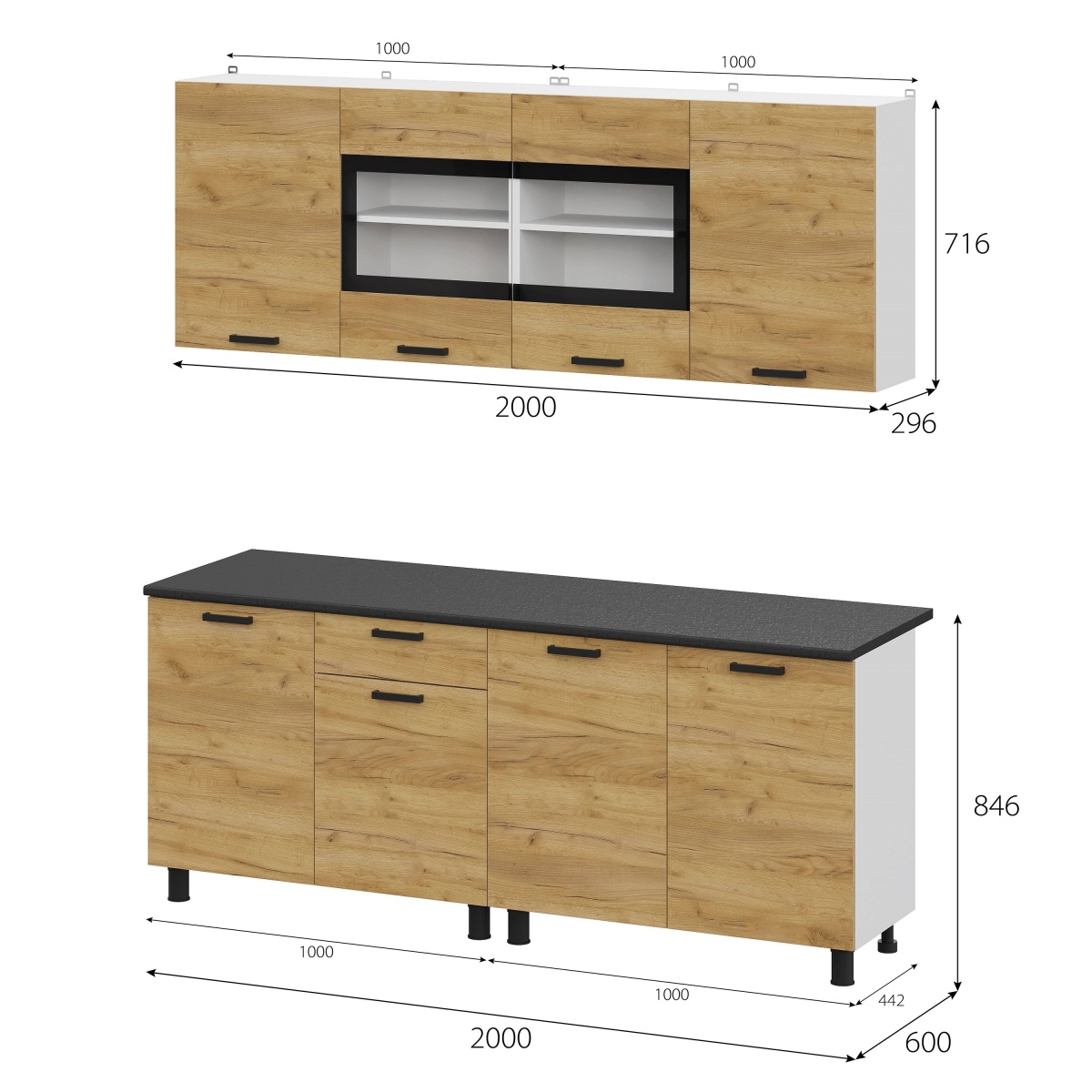 Ширина по нижним шкафам (мм)