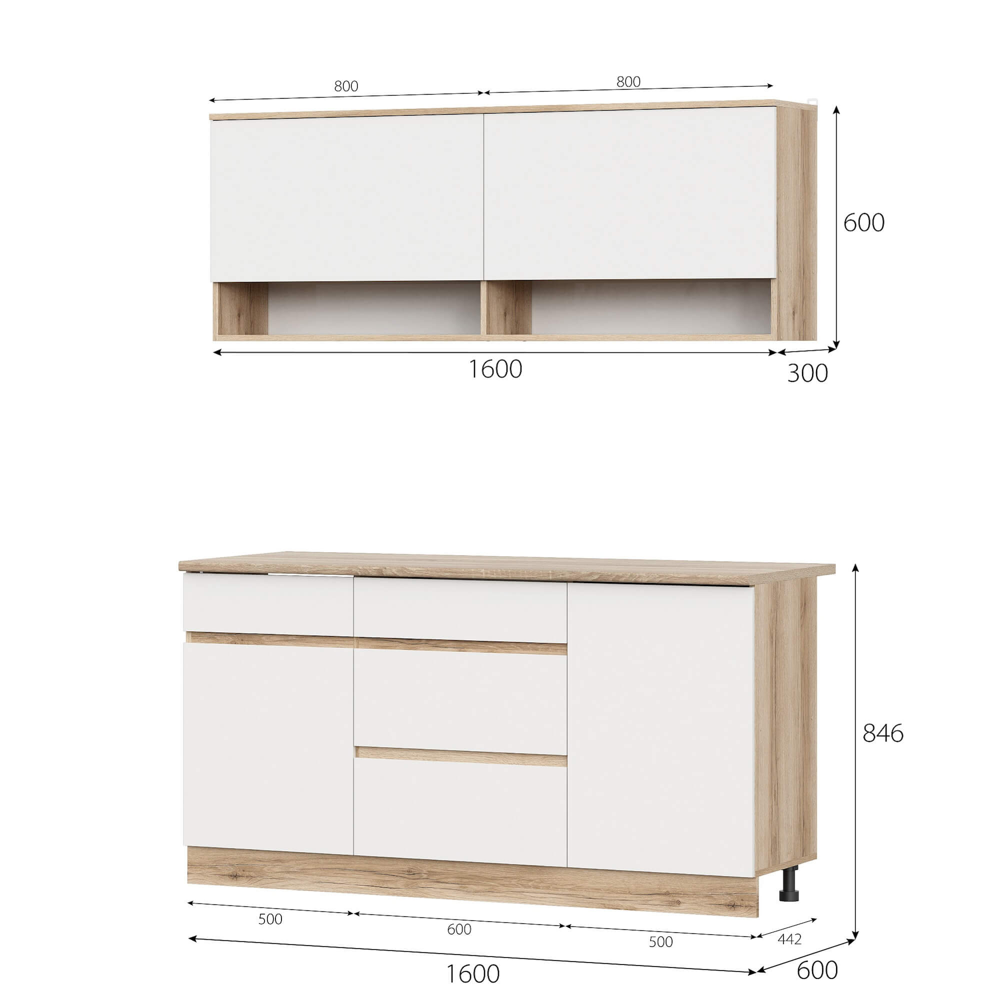 Ширина по нижним шкафам (мм)