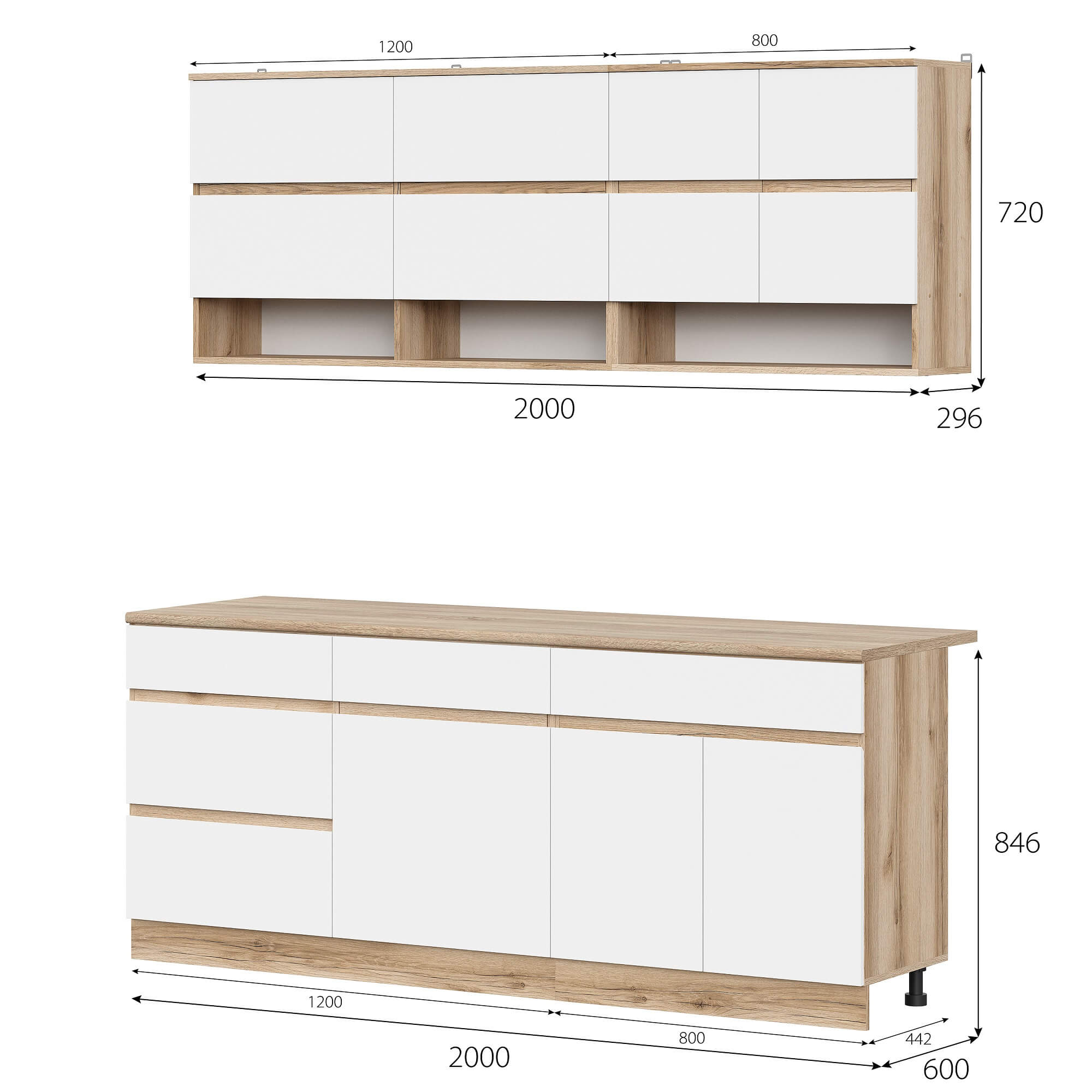 Ширина по нижним шкафам (мм)