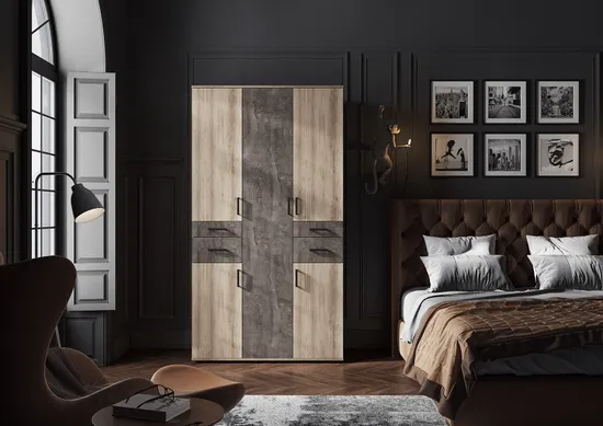 НЕЛЬСОН ШК 02 Шкаф Фасад ЖЕЛЕЗНЫЙ КАМЕНЬ/Корпус ДУБ КАНЬОН