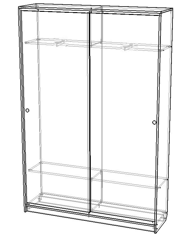 боковые стойки имеют скос под плинтус, между антресольными и цокольными полками имеются перегородки, средняя часть шкафа единая (без перегородки)