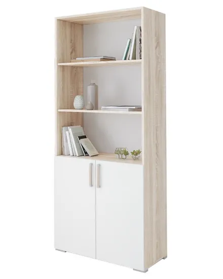Стеллаж КВАРТЕТ дуб сонома / белый с тиснением поры дерева