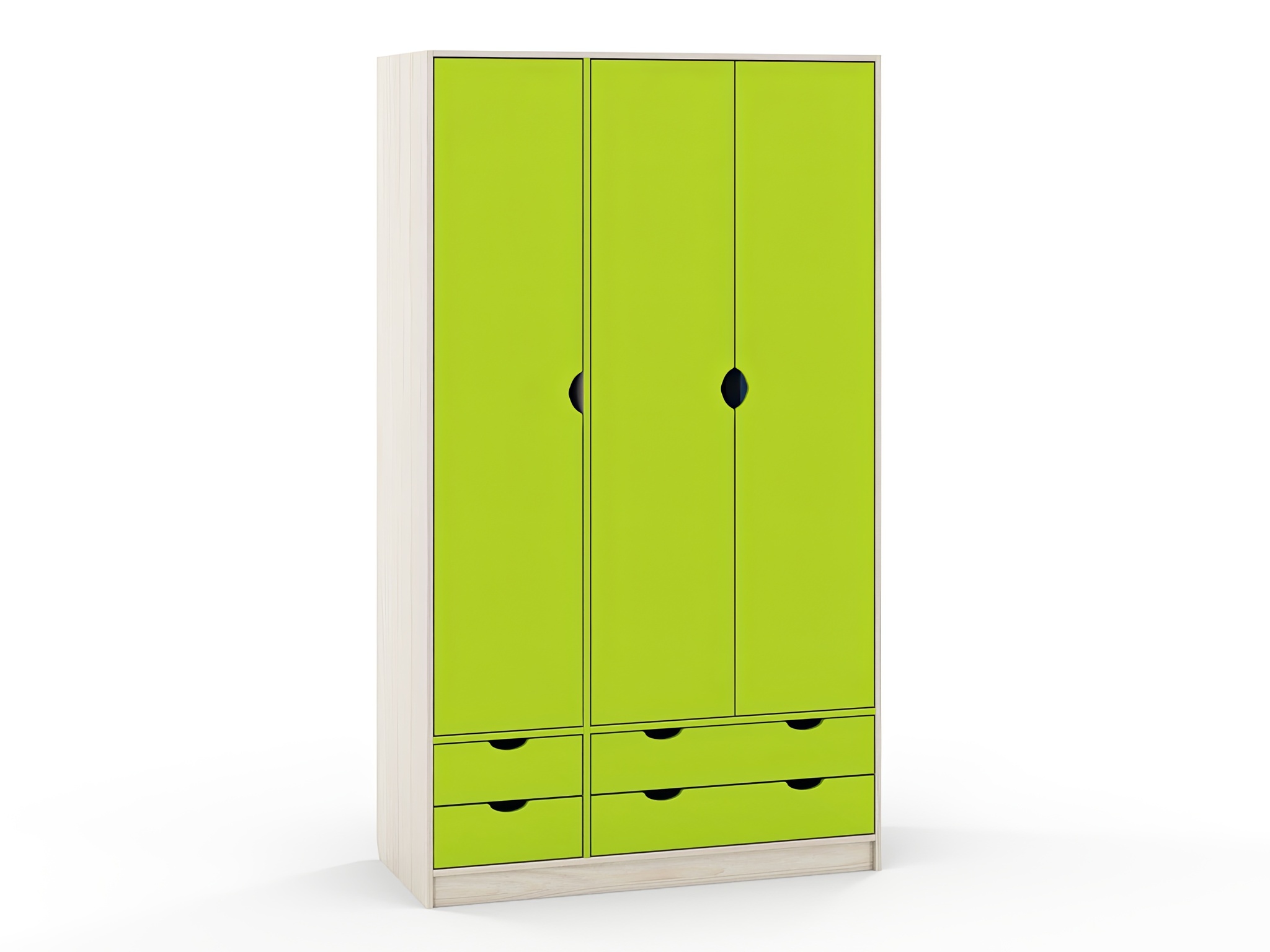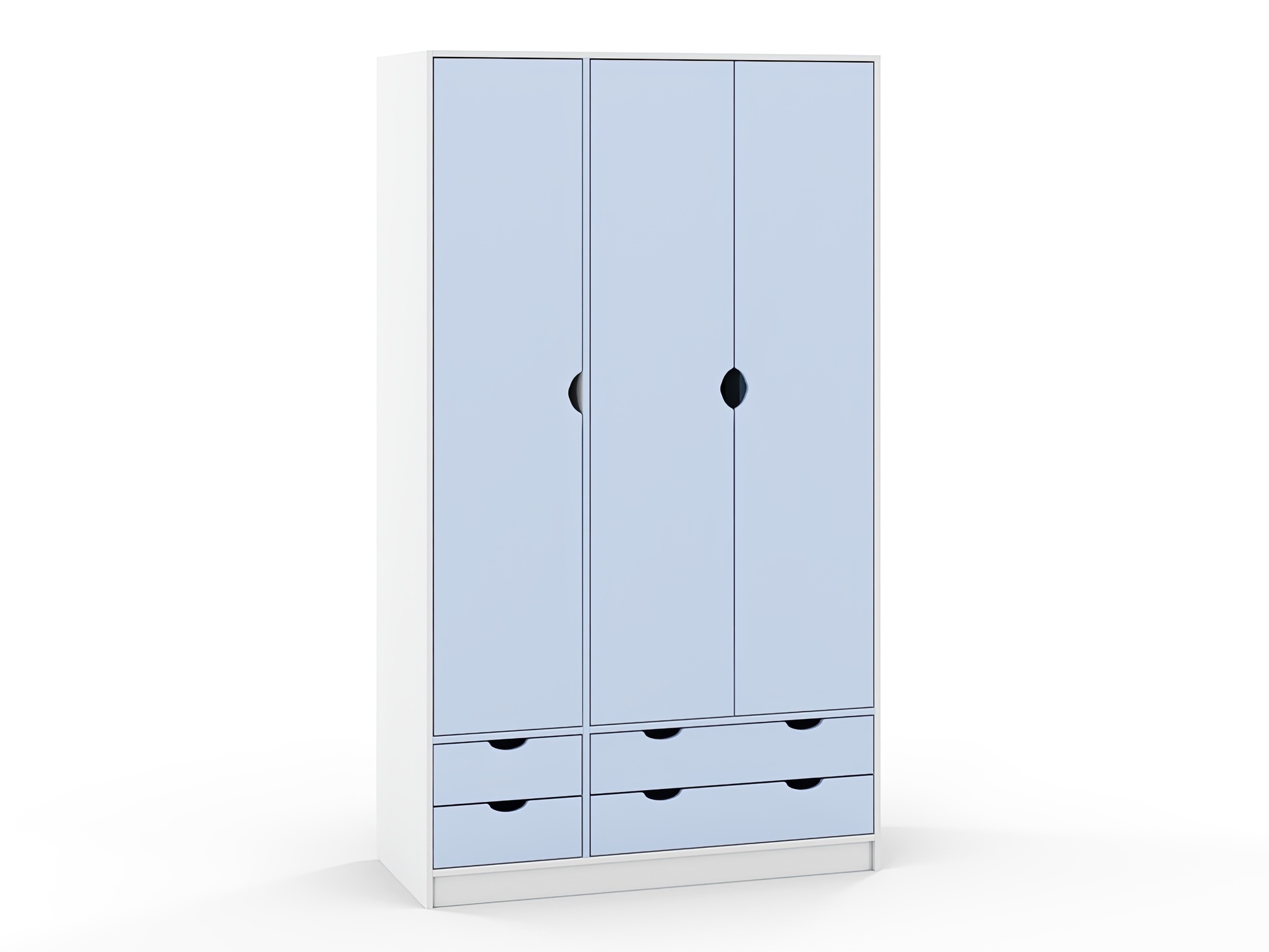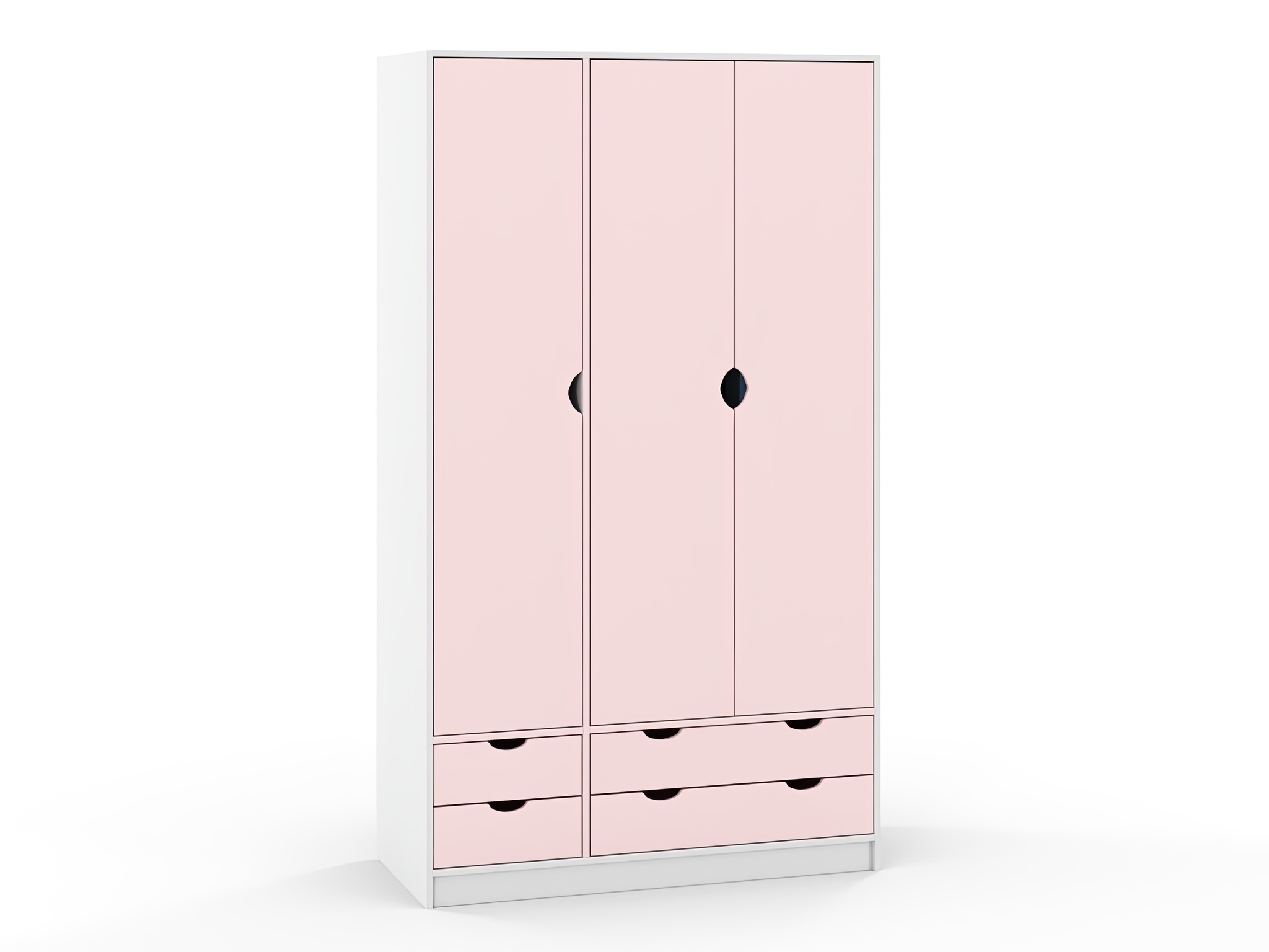 кромка ПВХ 0,4 мм, лицевая фурнитура отсутствует, дверцы и ящики открываются за край фасадов, направляющие ящика бесшумного закрывания, направляющие ящика полновыкатного типа, петли вкладные, пластиковые подпятники