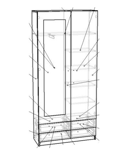боковые стойки не имеют скоса под плинтус, большая вместимость, высота дверей 1984 мм, высота цоколя 80 мм, размеры зеркала 1700*390 для изделия 1100*2400*403, рекоменуется комплектация стеллажом АКРОН глубиной 384 мм