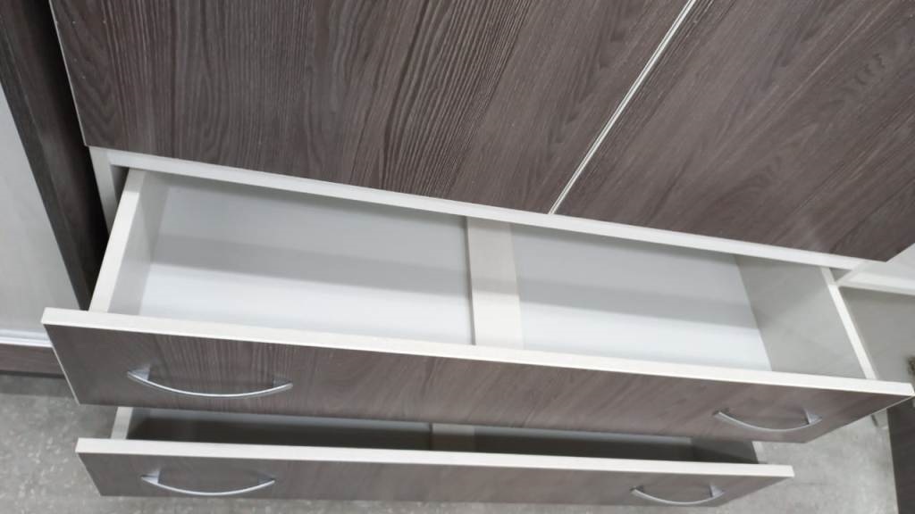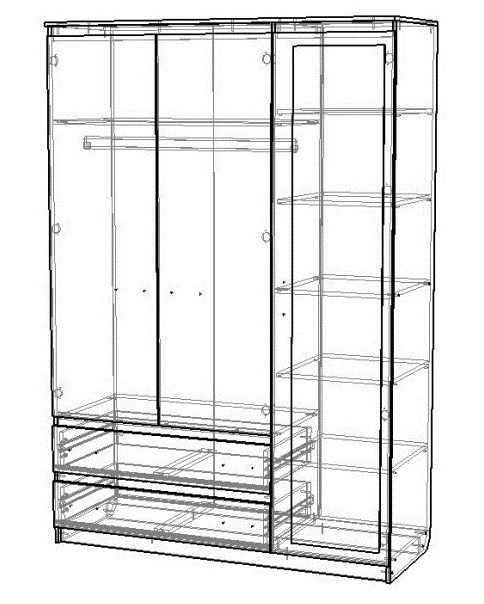 боковые стойки имеют скос под плинтус, большая вместимость, для высоты изделия 2000 мм высота от штанги до дна платяного отделения - 1000 мм, полновыкатные ящики обеспечивают легкий доступ к вещам, размеры зеркала 1520*390 для высоты шкафа 1800 мм, размеры зеркала 1700*390 для высоты шкафа 1900 мм ; 1970*370 для высоты шкафа 2200 мм, размеры зеркала 1700*390 для высоты шкафа 2100 мм