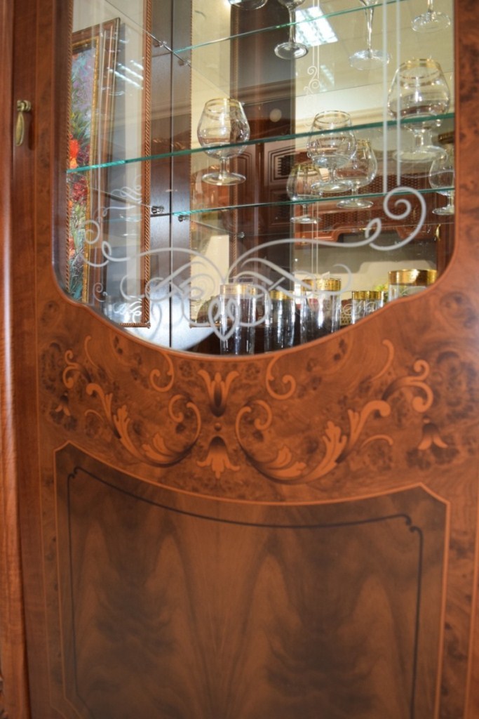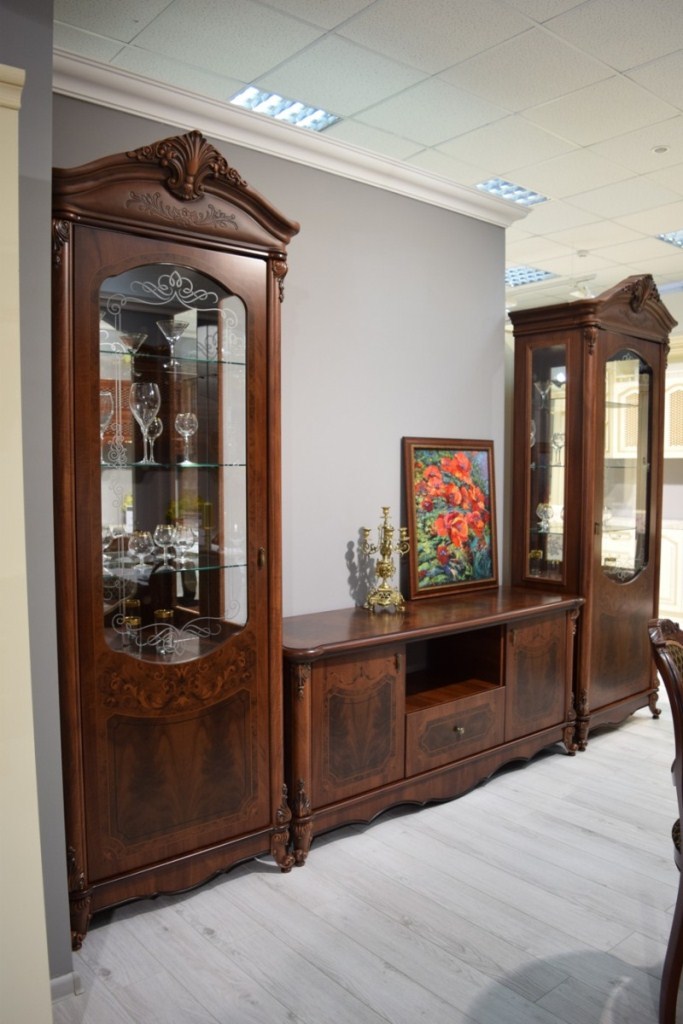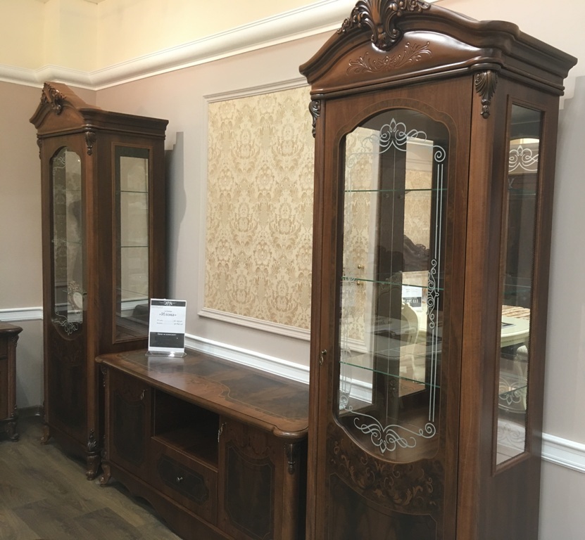 - Насыщенный древесный тон мебели и приятную округлость линий дополняют богатство и причудливая грация узоров на пилястрах.