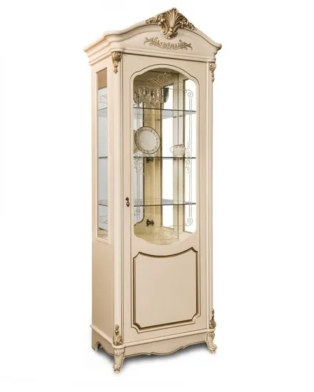 - Пастельный тон мебели и приятную округлость линий дополняют богатство и причудливая грация узоров на пилястрах.