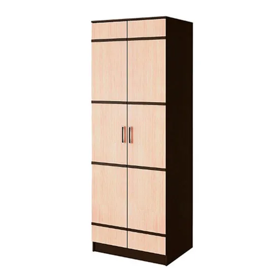 Шкаф Сакура может использоваться самостоятельно или в комбинации с другими модулями из одноименной мебельной серии. Вы сами будете регулировать внутреннее наполнение шкафа: использовать только полки, а возможно совместить их со штангой для вешалок. Распашные дверцы выполнены из ЛДСП, комплект зеркал приобретается отдельно.