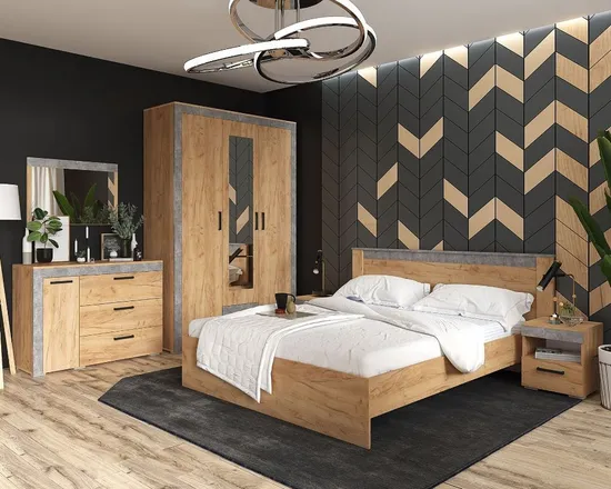 — Спальный гарнитур выполнен в цветах: Белый с тиснением «Древесные поры» и «Дуб Крафт Золотой» или «Дуб Крафт Золотой» и «Ателье светлое».
