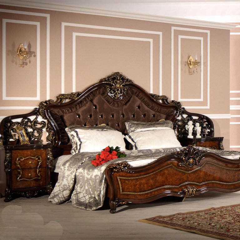• Резные узоры декора кровати завораживают филигранным исполнением деталей, а всеобъемлющая мягкость спинки дарит умиротворение.