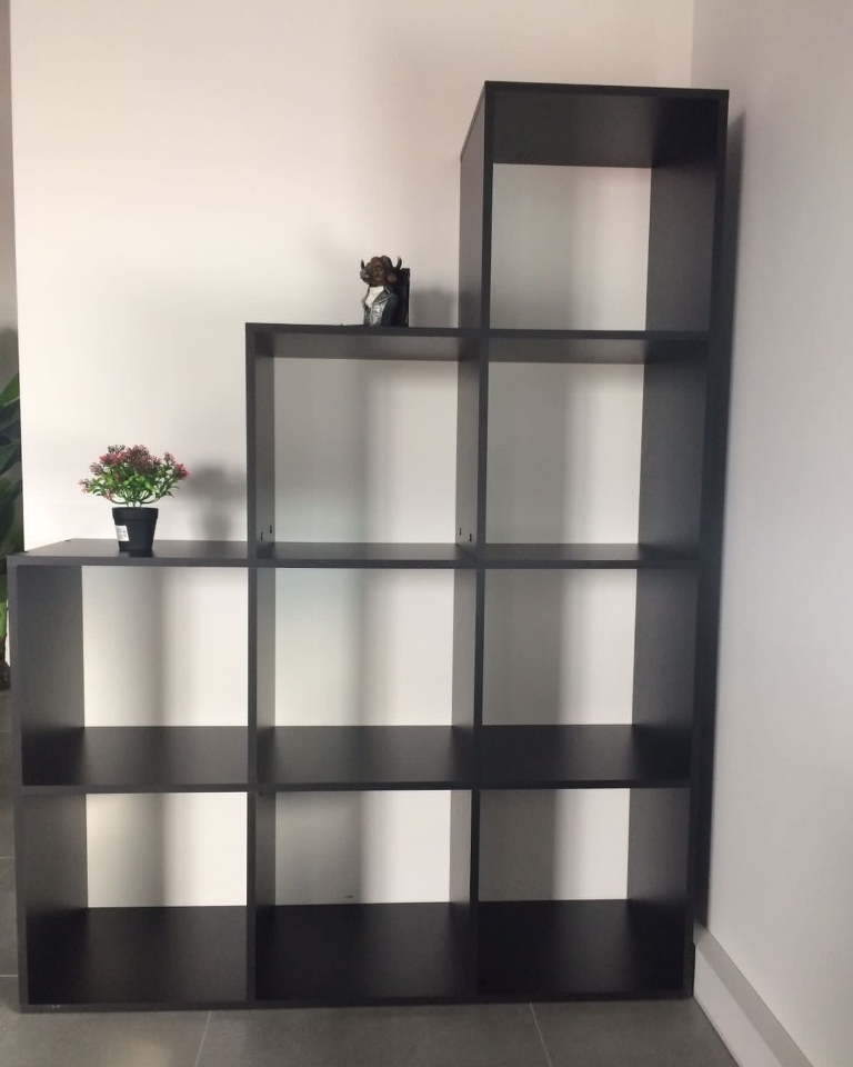 • Создаёт эффект открытого пространства. Открытые стеллажи не загромождают пространство комнаты ввиду отсутствия задней стенки. Это делает мебель «воздушной», «прозрачной», и в то же время вместительной;