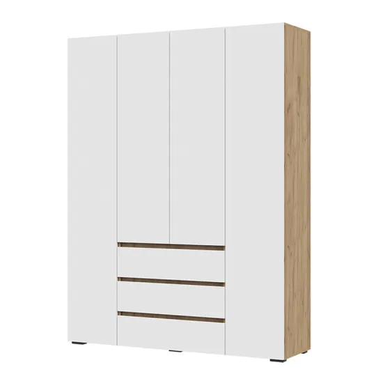 ХЕЛЕН ШК 05 Шкаф четырехстворчатый с ящикамиФасад БЕЛЫЙ/Корпус ДУБ КРАФТ ЗОЛОТО