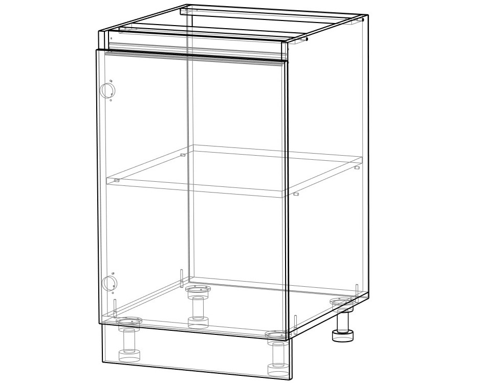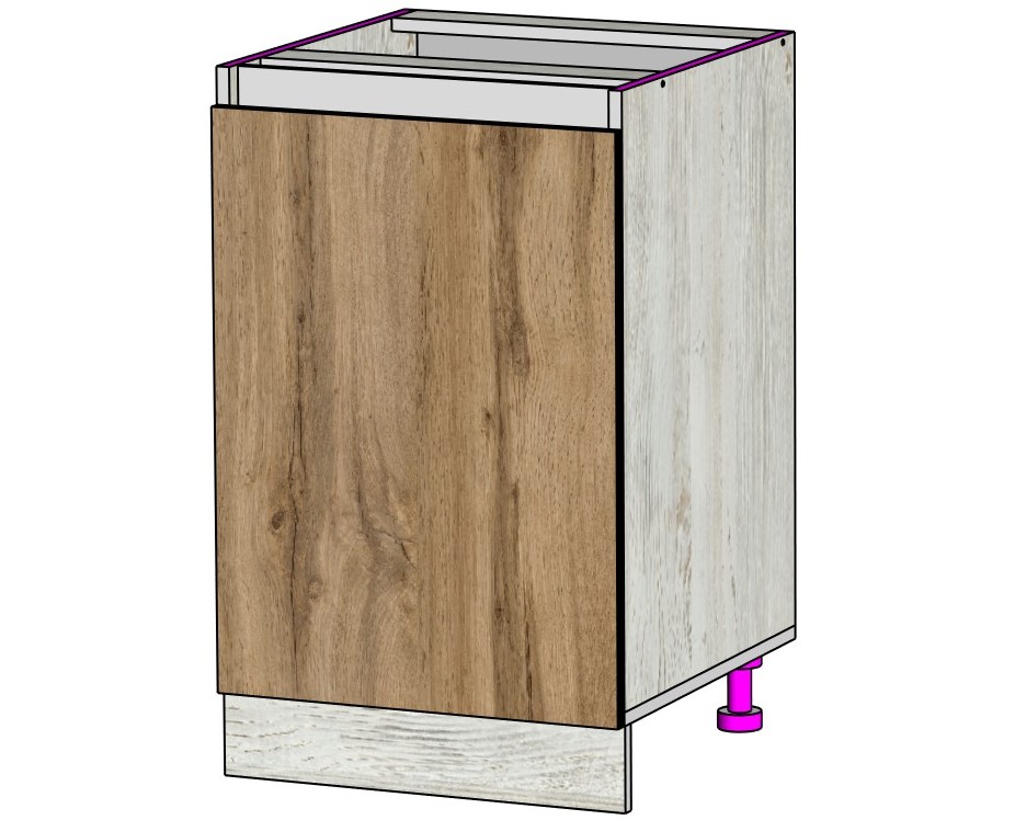 лицевая фурнитура (ручки) отсутствует, для открывания дверей и ящиков (в зависимисти от модификации) используется профиль GOLA (крепится к корпусу), опоры пластиковые черные, торцевые стороны деталей фасадов обработаны кромкой ПВХ толщиной 2 мм!