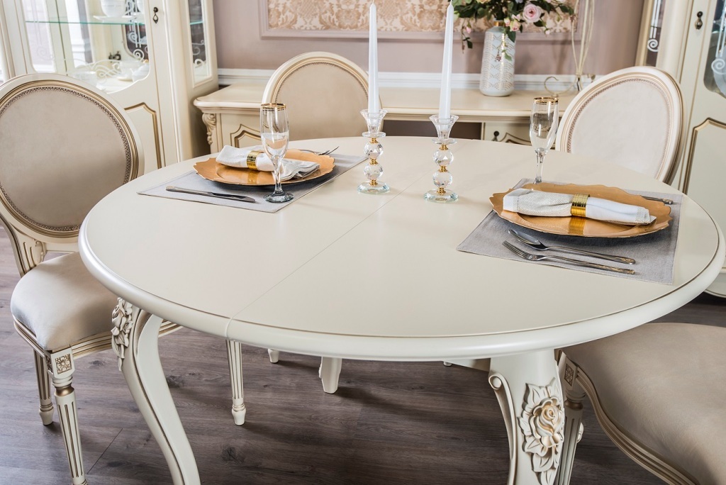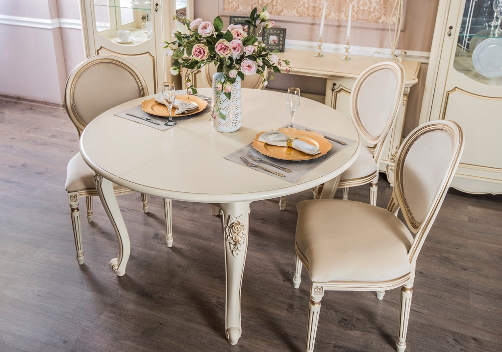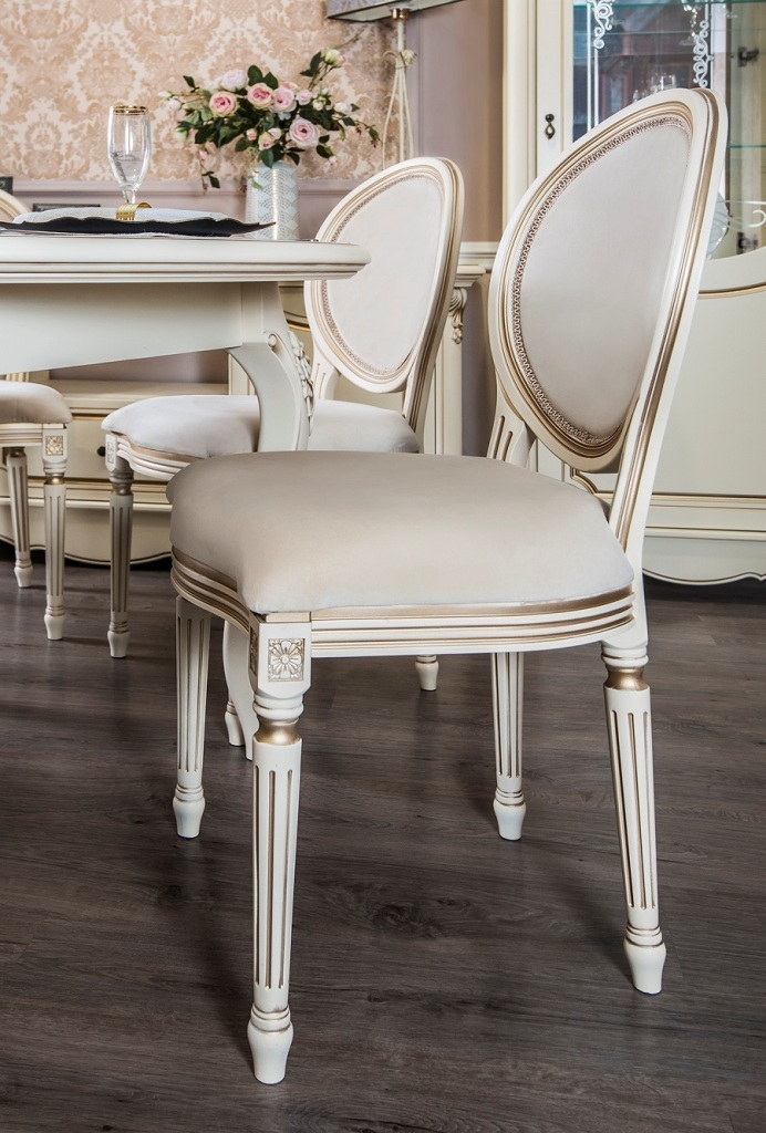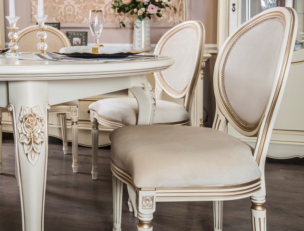 Столы и стулья из коллекции «Мона Лиза» позволяют хозяевам принимать гостей или встречаться на семейном ужине в королевской обстановке. Обивка мягких стульев с изящными линиями и минималистичным декором прекрасно соответствует стилю общего гарнитура. Мебель создает в столовой атмосферу аристократичности и роскоши, в которой приятно находиться. Столы и стулья из этой коллекции останутся актуальными даже по прошествию десятилетий.
