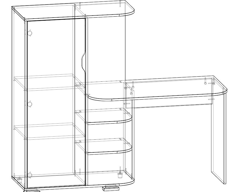 размеры столешницы 1102*602 мм, ширина дверцы шкафа 460 мм, стойка шкафа 450 мм, ширина полк в постолье 384 мм, ширина проёма для ног 684 мм