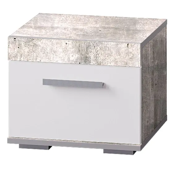 Отличный выбор для спальни – прикроватная тумба Инстайл. Белый матовый фасад придает модели свежести и легкости. А сочетание с цветом бетон делает тумбу очень современной. В выдвижном ящике, дополненным удлиненной ручкой геометрической формы, можно хранить все необходимые вещи.