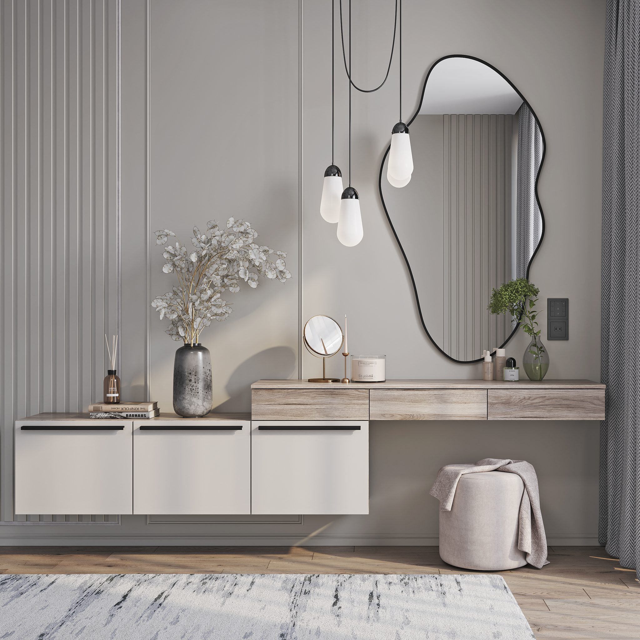 Тумба «Урбан» - это стильное и практичное решение, которое поможет организовать грамотное хранение мелочей и сэкономить пространство в комнате. Тумба крепится к стене с помощью навесов, ее можно расположить над рабочим столом, в гостиной или спальне. Интересная особенность дизайна данной модели – это минималистичные фасады без ручек. Ящики открываются с помощью толкателей с магнитами.