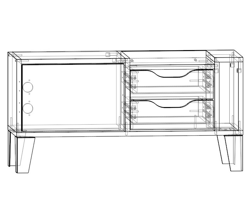 высота опор 125 мм, фасадные торцы дна и крышки обработаны кромкой ПВХ 2 мм, остальные детали кромка ПВХ 0,4 мм