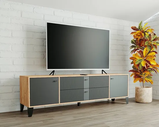 Тумба-ТВ ПАРУС-10 дуб крафт золотой / карбон вулкан