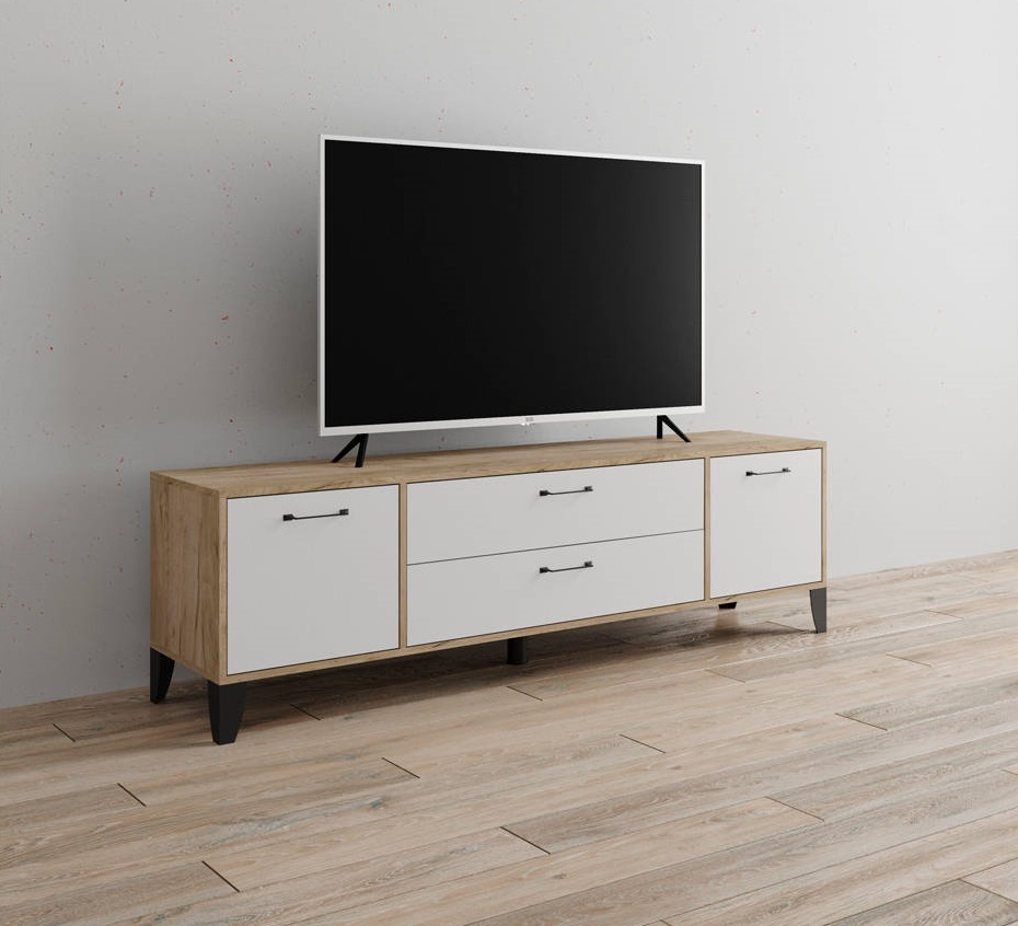 Тумба-ТВ ПАРУС-13 дуб крафт серый / белый