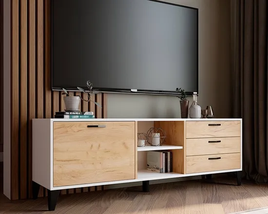 Тумба-ТВ ПАРУС-9 белый / дуб крафт золотой