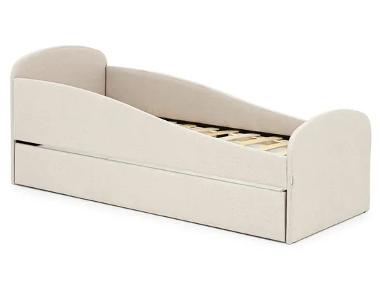 Кровать оборудована большим вместительным моно ящиком, в котором будет удобно хранить игрушки или постельные принадлежности. Ящик легко выдвигается за счет прорезиненных колесиков, которые не поцарапают ваш пол.
